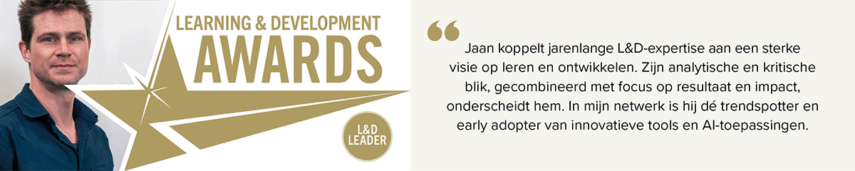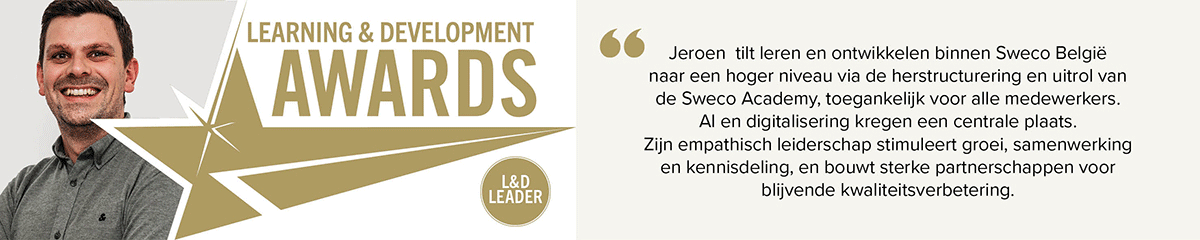 Het is trouwens aan jou om hun plaats in te nemen in 2027. Twijfel niet en nomineer voor een L&D Award 2027. Het zou super zijn mocht jij of jouw kandidaat hieronder staan in 2027 ... Wij kijken ook uit naar leerleiders die zich op de werkvloer bevinden en dus niet meteen een L&D functie hebben, want leren hoort volgens ons in de business te zetten. Dus ken jij zo'n (lijn)manager dia anderen in de leerstand zet? Nomineer voor 2026!